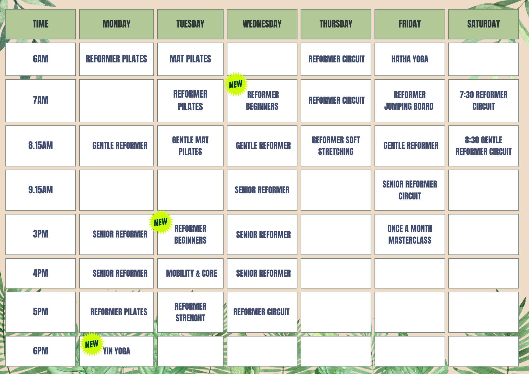 SENIOR REFORMER CLASSES ARE ONLY AVAILABLE ON CASUAL VISIT ($12.50 DROP IN PER SESSION)